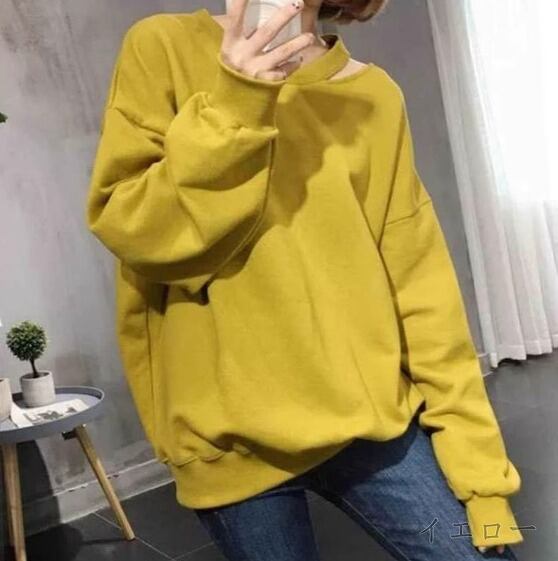 スウェット トレーナー 長袖 切り替え 体型カバー 着痩せ 無地 カジュアル