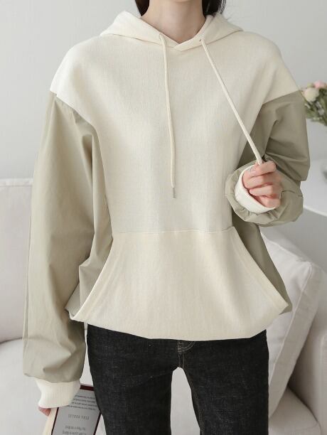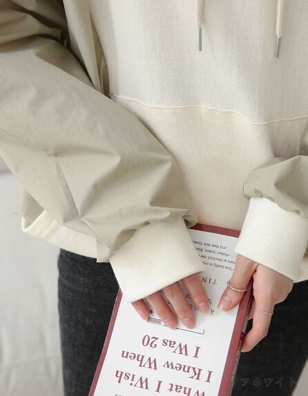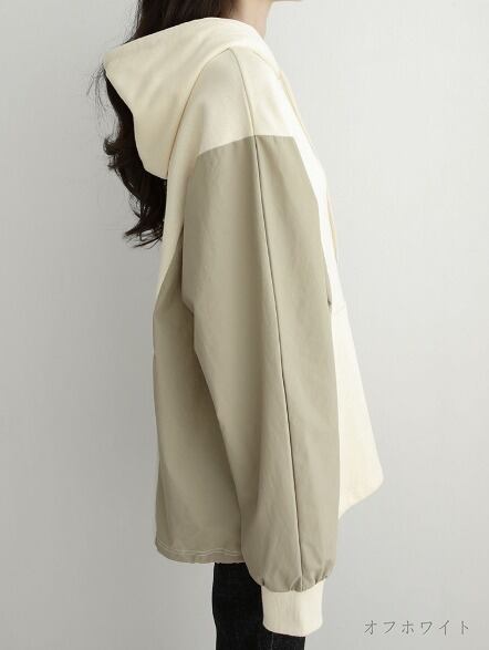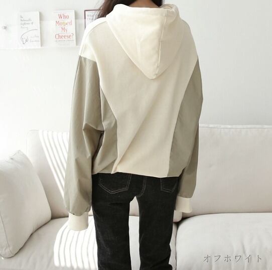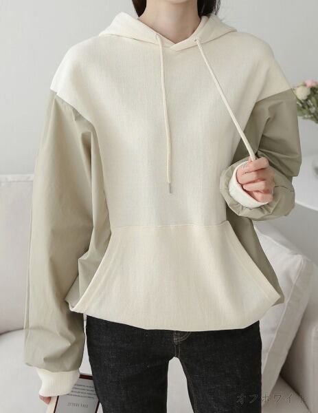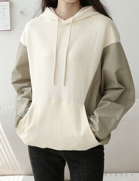 スウェット トレーナー 長袖 切り替え バイカラー 体型カバー 着痩せ 帽子付き シンプル カジュアル