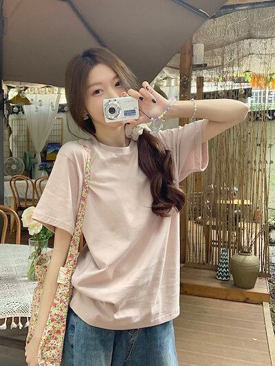 2024 春夏 トップス Tシャツ ラウンドネック 2色展開丈 休日 韓国 ファッション スリムフィット丈短め へそ出し 休日 おしゃれ T