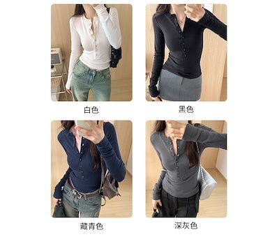 2024春夏 トップス 長袖 可愛い おしゃれ タイトフィット ラウンドカラー 重ね着丈 スリーブ 女っぽ Tファッション フェミニン きれいめ 色っぽ プリント★2