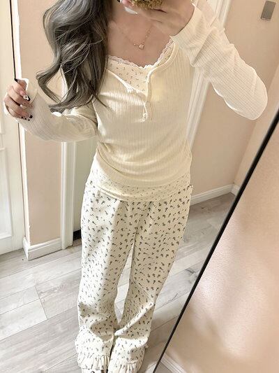 2024春夏 フェイクツーピース トップス 長袖 可愛い韓国 おしゃれ タイトフィット ラウンドカラー重ね着丈 スリーブ 女っぽ Tファッション フェミニン きれいめフレンチ 色っぽ プリント
