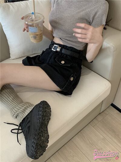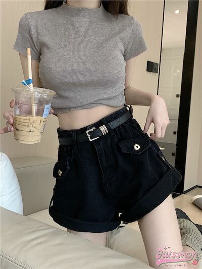 2024 春夏ヴィンテージロールジーンズ女性春のデザイン緩いワイドレッグパンツスパイシーガール細いハイウエストAラインショーツ