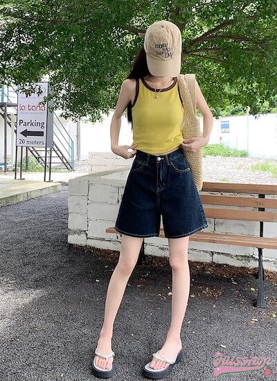 2024 春夏パンツ デニム ジーンズ ハーフパンツ ハイウエスト 脚長効果 美脚効果 細見え カジュアル かわいい おしゃれ 春 韓国ファッション レディース お出かけ