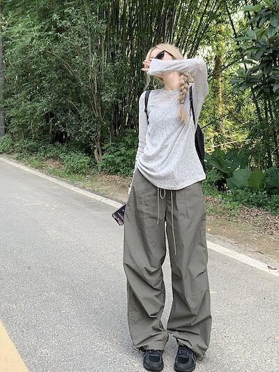 2024 春 透け感UP tシャツ ファッション 韓国 トップス デザイン カットソー イラストエンジェル 長袖丈パンツ