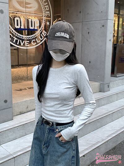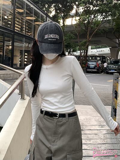 2024 春夏ホワイトインナー長袖Tシャツレディース春秋新作ベーシックモデルスリムポジティブショルダーラウンドネックボトムシャツ
