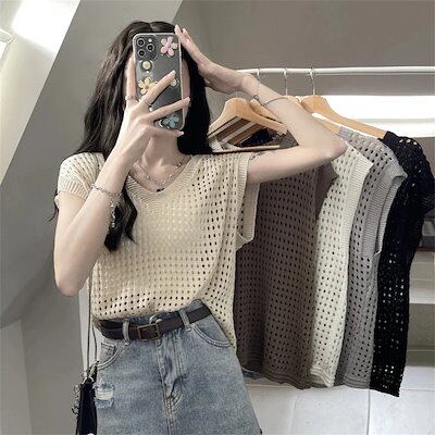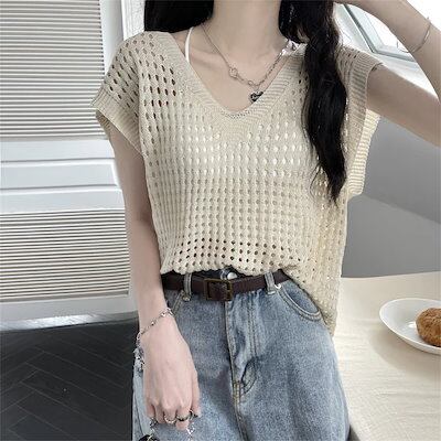 2024春夏 ニット レイヤード ニット カジュアル 可愛い おしゃれ タイトフィット ストリートネック重ね着丈肌見せフレンチ女っぽ Tファッションセーターフェミニンきれいめ色っぽ韓国