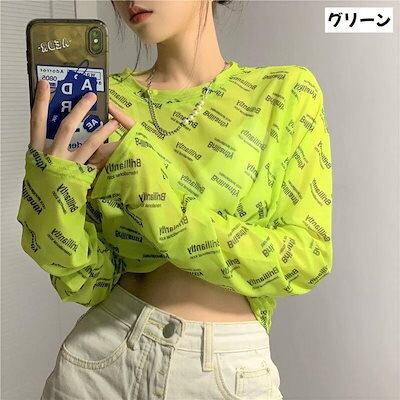 透けアイテム を楽しむ 透明感UP tシャツ ファッション 韓国 トップス デザイン カットソー イラストエンジェル 長袖 ロングプリント カジュアル 夏春 秋