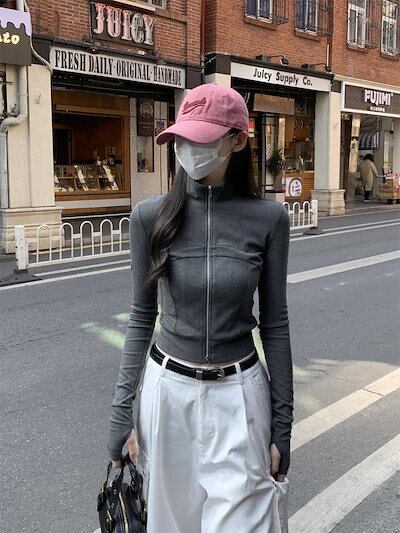 2024春夏 アウター ショート ブルゾン かわいい フル ブルゾン トップス ハイ スタンド ショート ストリート レディース 長袖 カジュアル ファッションお出かけトラック