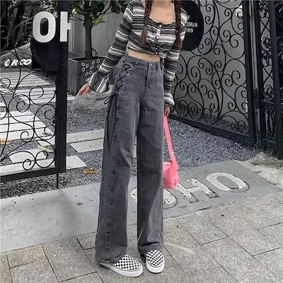 2024春夏 デニムパンツ ボトムス ゆったり カジュアルシルエット レッグロングパンツ 学生 韓国ファッション系
