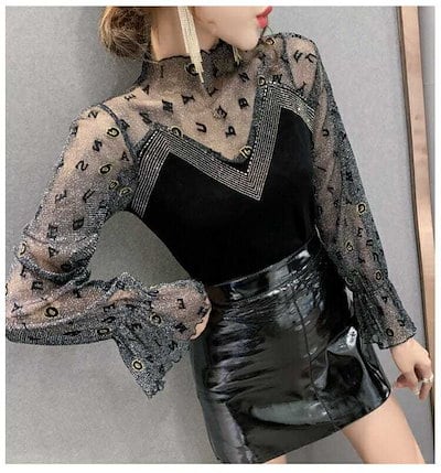 Tシャツカットソー 春 セクシー レース トップス 百掛け Tシャツ 長袖ブラウス インナー ハイネック着痩せニット 韓国ファッション紫外線対策 シースルー トップス チュール Tシャツ ベーシックニ
