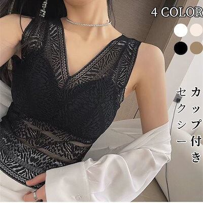 カップ付きインナー ノースリーブ カップ付きインナー ブラジャー一体型カバーキャミソール セクシー レース キャミソールインナー 韓国ファッション タンクトップ
