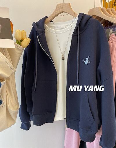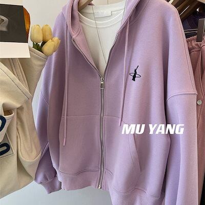 パーカーレディーススウェット春秋冬ゆったり着やせアウターフード付き裏起毛厚手外国貿易婦人服の尾品は在庫を切ってジッパーを拾って帽子のガーディアン女春秋の薄いゆるいコートに服を着た