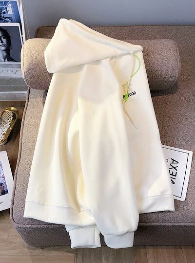 パーカーレディーススウェット春秋ゆったりアメリカンクリームアーモンド色のアルファベットフード付きミドル丈ガーディアン小衆デザイン上着