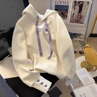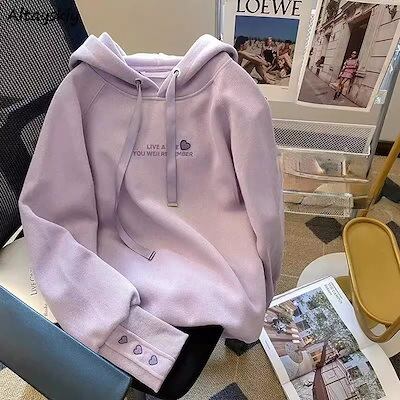 パーカーレディーススウェット春秋冬ゆったり裏起毛厚手紫色の文字刺繍と帽子のガーディアン女性2023年の新型春秋の小柄なゆったりとしたコートの上着が流行した