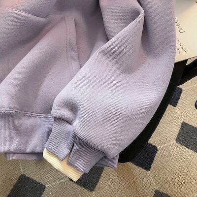 裏起毛パーカーレディース春秋ゆったり着やせアウタートップス百掛けカジュアル運動厚手上着秋冬レトロ学院風上着ファッション