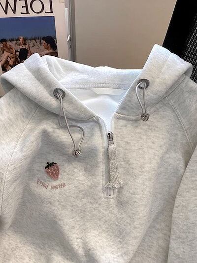 パーカーレディース春秋ゆったり着やせアウタートップス百掛けカジュアル運動上着いちご刺繍引き紐帽子付き新型高級感洋気ゆるい上着コート