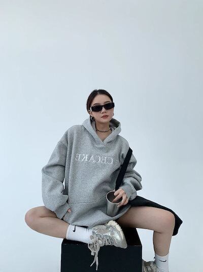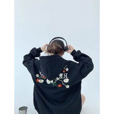 パーカーレディース秋冬厚手ゆったり着やせアウタートップス百掛けカジュアル運動上着冬アメリカ小衆上着オーバーサイズ刺繍銀狐パイル起毛