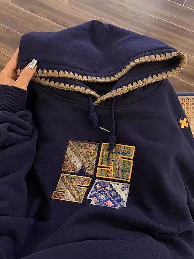 パーカーレディース春秋ゆったり着やせアウタートップス百掛けカジュアル運動上着刺繍アメリカ風レトロフード付きカーディガン怠惰な風のオーバーサイズ