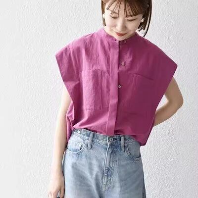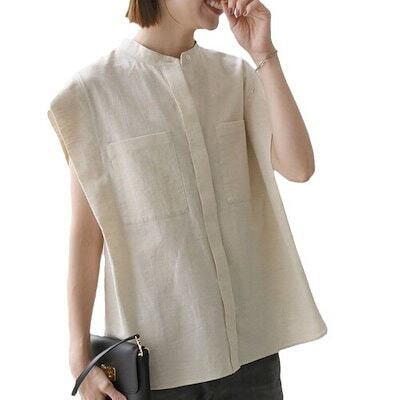 Tシャツレディースノースリーブ日韓シャツレディース夏薄い小柄純綿シンプル無地ストレート着やせカジュアルシャツ上着トップス