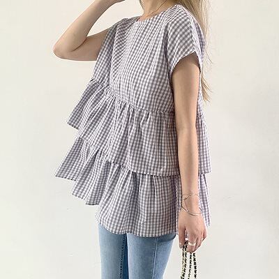 Tシャツレディースノースリーブ新日系半袖シャツ女夏高級感ゆるいシンプル無地丸襟カジュアルプリーツハスの葉の縁