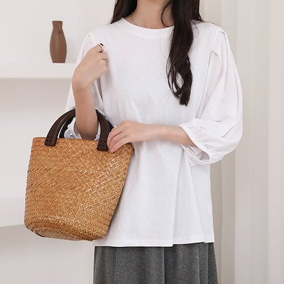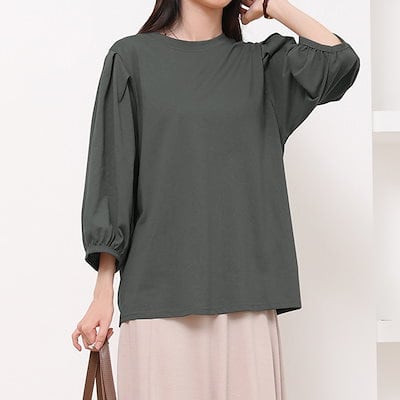 tシャツ日系純綿tシャツレディースパフスリーブ早秋清新通気パフスリーブ丸首純色七分袖上着女性