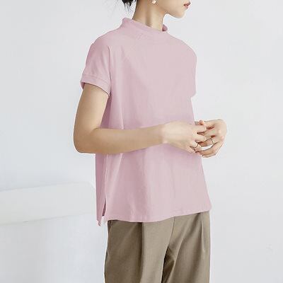 tシャツ9色スポット夏綿質純色半袖レディースパフスリーブtシャツフランスプルオーバー女性サイドオープンフォーク