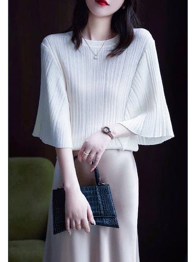 ニットTシャツ夏レディース氷爽糸洋気ニット女春夏の新型フランス気質薄手コウモリ袖半袖tシャツ上着