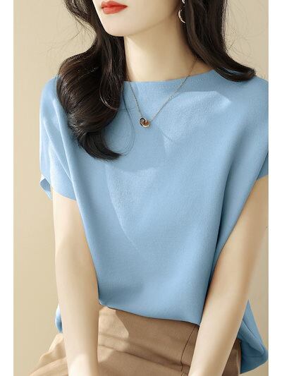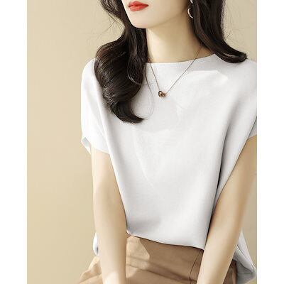 ニットTシャツ夏レディース春夏の新型の一字襟はゆったりしていて痩せていて袖のない薄いtシャツの女性は内側にコウモリの袖のニットの半袖を着ている