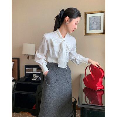 春と秋のフランスの白いレースの蝶結びのシャツの婦人服のデザイン感の小さい大衆の気質のシャツの独特なシックな上着