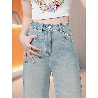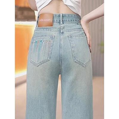 2024夏ワイドレッグジーンズレディースナローバージョン多用途ポケット刺繍デザイン韓国風ストレートパンツ