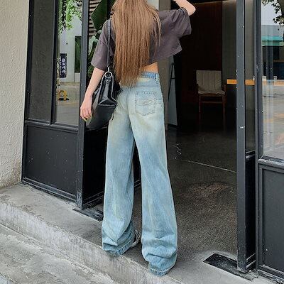 2024春夏アメリカンレトロウォッシュドルーズストレートジーンズレディース刺繍ドレープワイドレッグパンツ
