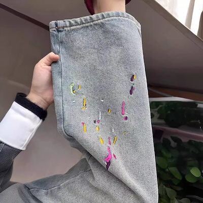 アメリカン刺繍入りストレートジーンズ レディース 2024年新作 夏スタイル 大きいサイズ 太mm ハイウエスト スリム ワイドレッグパンツ トレンドブランド