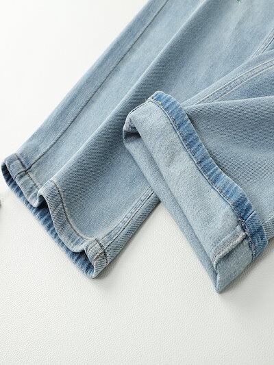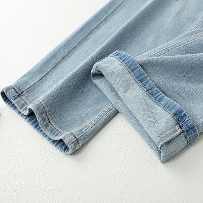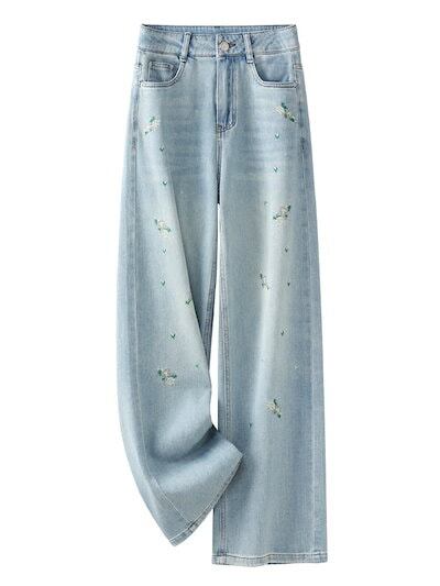 女性用ライトカラー刺繍ジーンズ夏薄手2024ハイウエストワイドレッグルーズ夏ナローストレートパンツ49