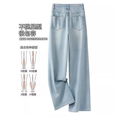 女性用ライトカラー刺繍ジーンズ夏薄手2024ハイウエストワイドレッグルーズ夏ナローストレートパンツ50