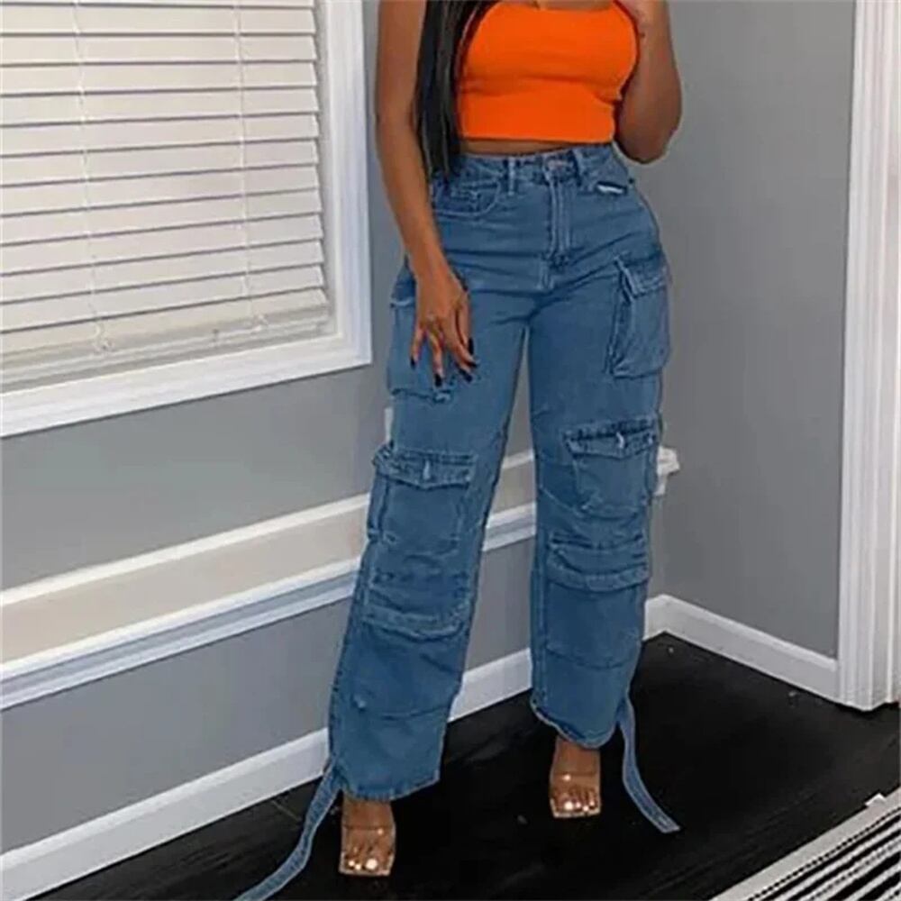 女性のためのtraf-カーゴジーンズ、ハイウエストバギーパンツ、青と黒、デニムパラシュート、y2kストリートウェア、ファッション、2024 ボトム ワイドレッグ バギーパンツ T240831225706_02