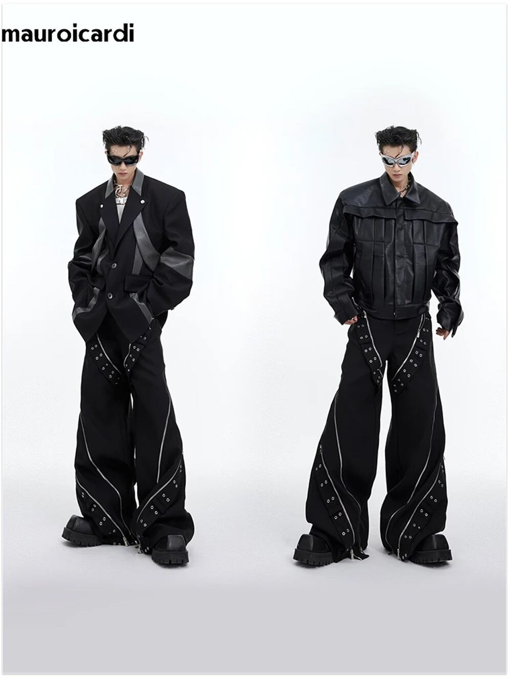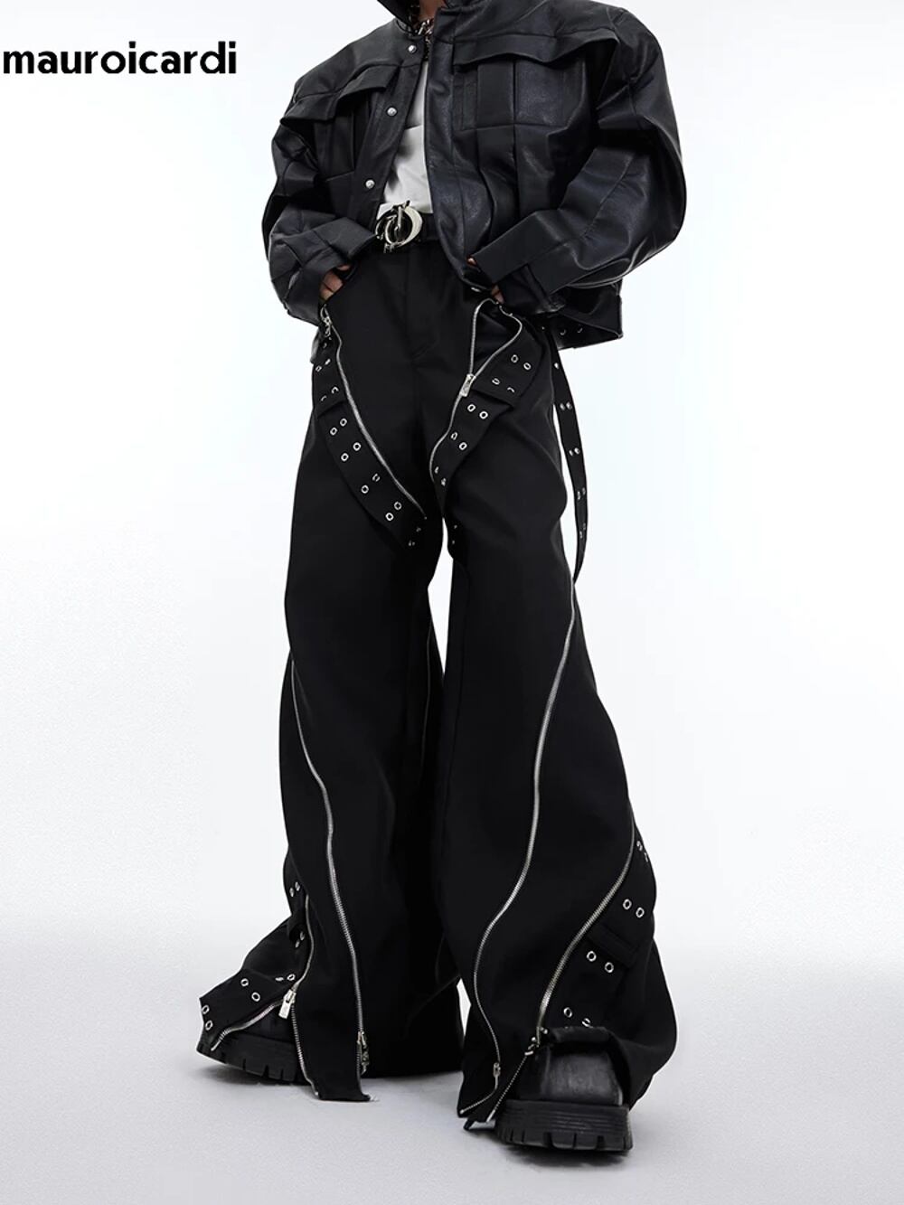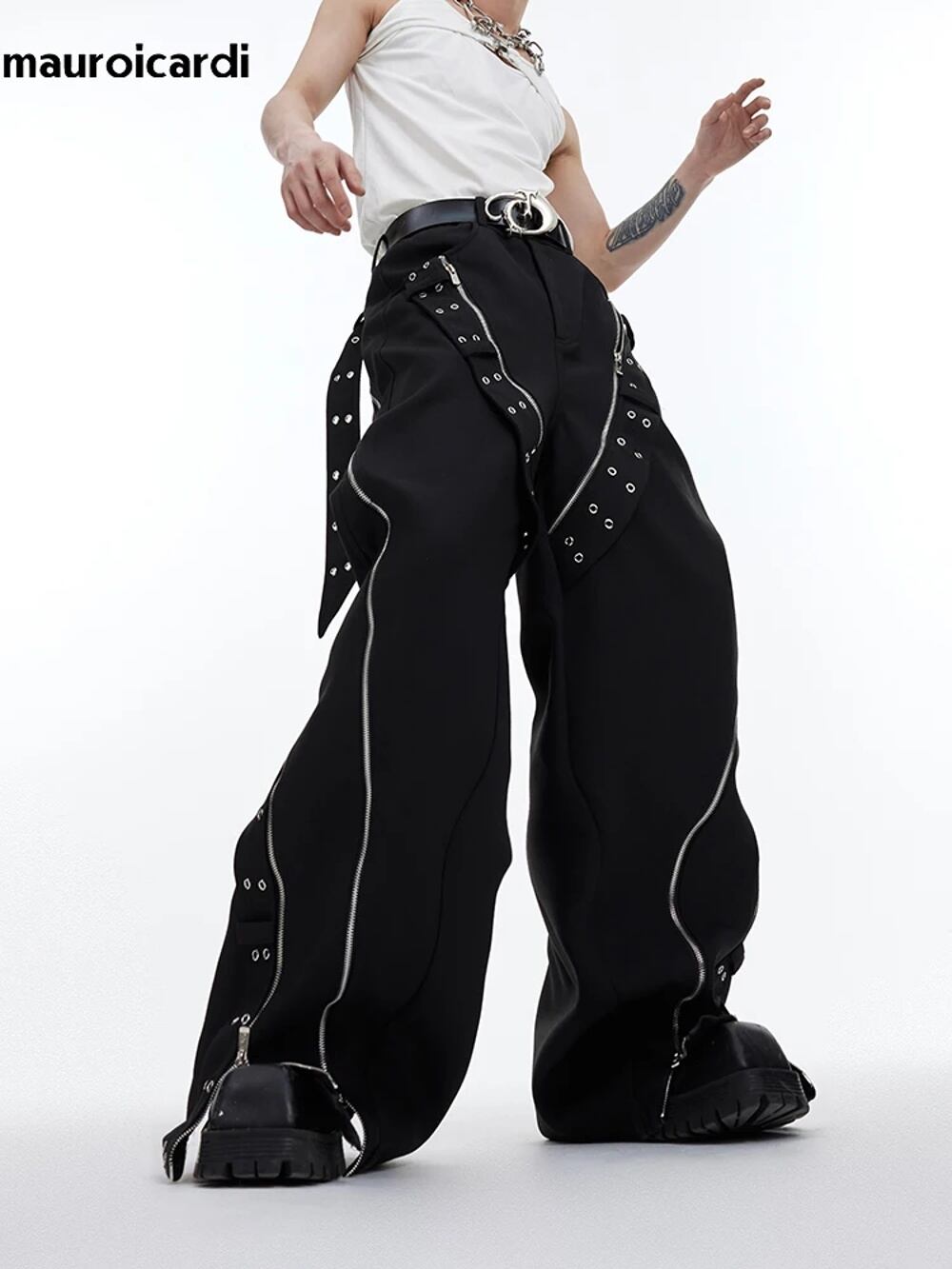男性用マロウicardi黒の長い花柄のバギーパンツ、ワイドレッグパンツ、ストリートウェアのファッション、クール、ラグジュアリーデザイナーの服、春、2024 ボトム ワイドレッグ バギーパンツ T240901062710_01