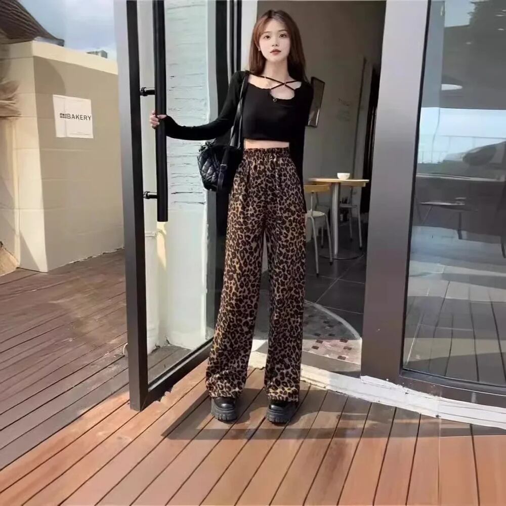 女性用ハイウエストドレープパンツ,ヒョウ柄,ベルボトム,薄いスタイル,ゆったりとしたフィット感,カジュアルウェア,新しい夏のコレクション2024 ボトム ワイドレッグ バギーパンツ T240901065742_02