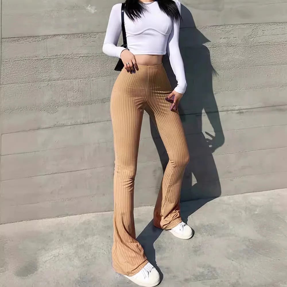 女性のための単色ハイウエストパンツ,カジュアル,タイト,マイクロ,伸縮性,ファッショナブル,新しい ボトム ワイドレッグ バギーパンツ T240901065840_01