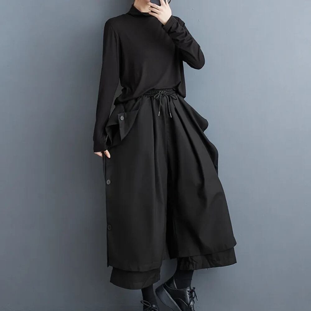 女性用ワイドレッグパンツ,サイドボタン付きワイドレッグ,足首の長さ,ゆったりとしたストリートウェア,バギーパンツ,2層,ハイウエスト,レディース,#2970 ボトム ワイドレッグ バギーパンツ T240901065856_01