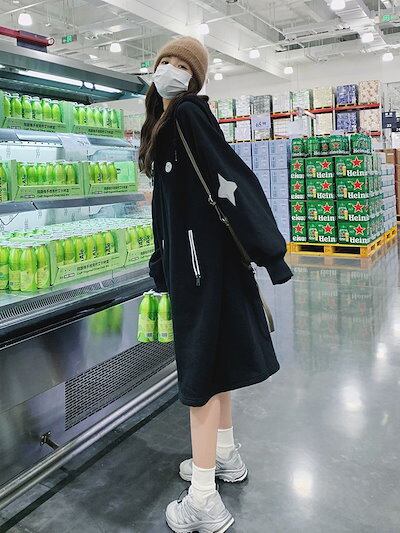 新作 秋冬 裏起毛 厚手 フード付き パーカー 長袖パーカー 可愛い ロング丈 スウェット カジュアル トップス ゆったり アウター 福袋