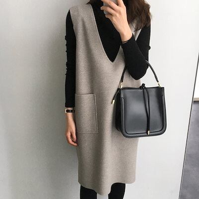 2023秋冬 新作 Vネック ノースリーブベスト カジュアルおしゃれ ゆったり 通勤 ロングベスト プルオーバーデザイン トップス アウター ベストウォーム 韓国ファッショ ラシャン ベストAWアウタ