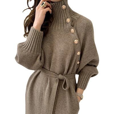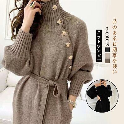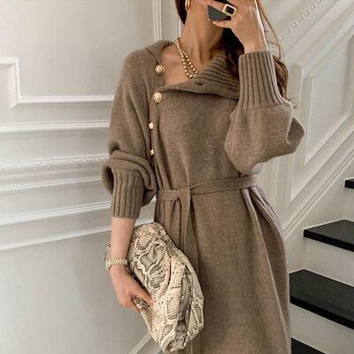 3色 秋冬 新作 おしゃれ 厚手 ニットワンピース レディースワンピース 気質 高級感 ハイネック セーター ロングワンピース 韓国ファッション