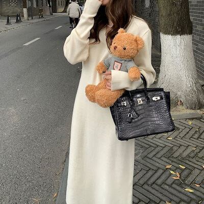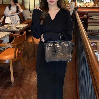秋冬 新作 おしゃれ 通勤 気質 ニットワンピース レディースワンピース 高級感 セーター ロングワンピース 韓国ファッション