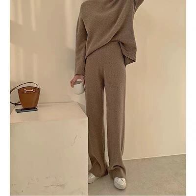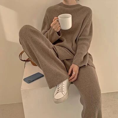 秋冬 新作 ニット 二点セット おしゃれ 気質 アウター レディースセットアップ 上下セット セーター ワイドパンツ セットアップ 通勤 シンプル 福袋