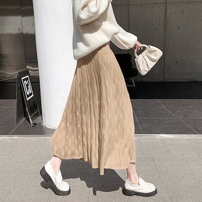 秋冬ハイウエストカットスカート女子丈の毛糸A字大振り プリーツスカート ロングスカート 可愛い スカート ハイウエスト タイトスカート 流行り 百掛け スカート