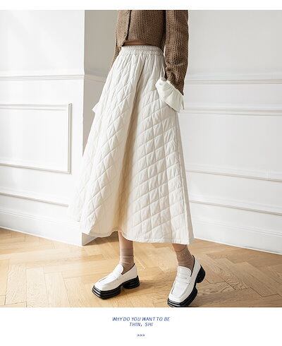 秋冬 中綿カート 厚手 保温 スカート スカート 流行り 防寒 百掛け カート ロングスカート 可愛い セミロング