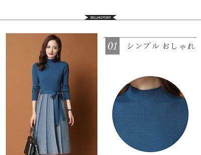 ニットワンピース レディース ベーシックニット 秋冬 きれいめ 膝丈ワンピース 長袖 リボン Aラインプリーツスカート ニット 結婚式ドレス 通勤 ロング 着痩せ オシャレ