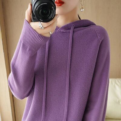 ベーシックニット 2022 秋冬 新作 パーカーウールセーター 女士 長袖 プルオーバー セーター ニットウェア 無地 ジャケット