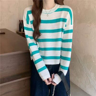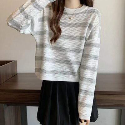 カーディガン ストライプ柄 ニット アイスシルク 韓国ファッション ゆったり ショート カーディガン デザイン感 アウターウェア