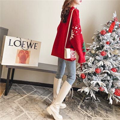 ベーシックニット レッド おしゃれ カジュアル セーター 秋冬 新作 汎用性が高い ゆったり 怠惰風 ニットカーディガン